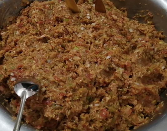 食堂備足了餃子面和美味的肉餡,大家自愿加入到包餃子的隊伍中,你和面搟皮,我填餡合邊,忙得不亦樂乎。